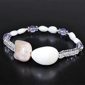 その下の子は、今年のラッキーカラー いちご色をしたモスコバイト♪ 『光の惑星』でも使って大人氣だった 美しい子ですわ☆ 水と金の氣と同時に持った天地のパワー。 体を上へ上へと引き上げる感覚が、 とにかく天上との繋がりを感じさせる すごいパワーの子ですの。 この子をガーネットと重ねることで、 強い天の氣が宿ることになりますわ。