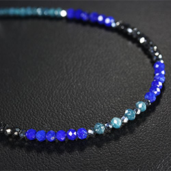 ブルーダイヤモンド ボタンカット (約1.5mm~)、ラピスラズリ ラウンドカット (約2.5mm)、テラヘルツ ラウンドカット (約1.5~2mm)、ブラックダイヤモンド ボタンカット (約1.5mm~)、合金3つの願い事