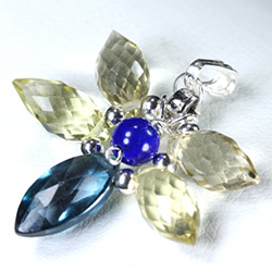 ロンドンブルートパーズ マーキスカット (約11×6×4mm)、ラピスラズリSA (約4mm)、レモンクォーツ マーキスカット (約9×4.5mm)、Silver925、合金双獅子フィルター ~陽光~(ペア)