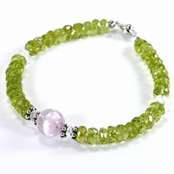 クンツァイトキャッツアイ ラウンド (約9mm)、ホワイトトパーズ ボタンカット (約3.5mm)、ペリドット ボタンカット (約5.5mm)、レインボーブルームーン ボタンカット (約4.5mm)、silver925、合金光の海と花 ブレスレット