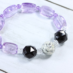 K2ブルー ラウンド (約12mm)、水晶 ボタンカット (約4mm)、モリオン スターカット (約12mm)、ラベンダーアメジスト (約14×10mm)、アメジスト ラウンド (約4mm)カテゴリ