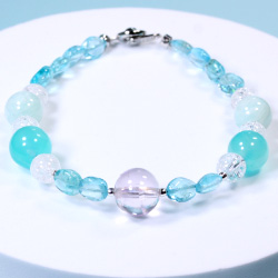 クンツァイト ラウンド (約10mm)、アパタイト 平タンブル (約7×5mm)、クラック水晶 ラウンド (約6mm)、ウイグル産アマゾナイトシリカ ラウンド (約8.5mm)、アマゾナイト ラウンド (約8mm)、silver925、合金カテゴリ