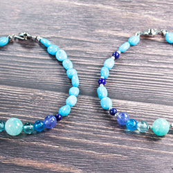 アマゾナイトインクォーツ ラウンド (約7~7.5mm)、アパタイト ラウンド (約5mm)、インディゴブルーアパタイト ラウンド (約5mm)、タンザナイト ラウンド (約6mm)、ラピスラズリ ラウンド (約3mm)、ターコイズ(スリーピングビューティー鉱山産) タンブル (約3mm~)、合金カテゴリ