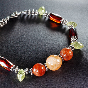 サンストーン ラウンド (約10mm)、ヘソナイト (オレンジガーネット) ラウンド (約8mm)、ブラックダイヤモンド ボタンカット (約1.5×1mm~)、グリーンガーネット マーキス (約8×4mm~)、レッドアンバー チューブ (約10×4mm~)、silver925、合金カテゴリ