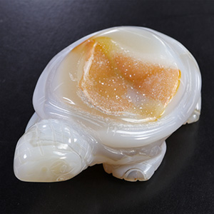 アゲートを切断して置物にしたものをトレジャーメノウ(財宝瑪瑙)と呼びます。 中国では聚宝盆(じゅほうぼん)と言い、 これ自体が氣を集める「龍穴」となるアイテムとして重宝されています。