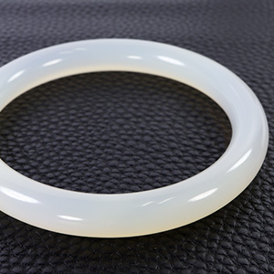 タピオカアゲート。 ゴビ砂漠で採れるゴビアゲートを研磨・漂白すると 写真のように表面が乳白色になり、この状態はタピオカアゲートと呼ばれます。 このほかに、形成時に水を取り込んだ「水入りメノウ」というものもあります。