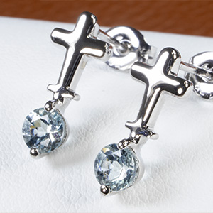 3月の誕生石としておなじみのアクアマリン。 夜の照明で一層輝きを増すことから「夜の女王」と呼ばれ、 中世ヨーロッパでは夜会用のジュエリーに多く使われたそうです。 天使の石とも呼ばれるこの石は、 ギリシャ神話では「海の精セイレーンの宝石箱からこぼれて浜に打ち上げられた宝石」という謂れがあったり、 古代ローマでは「月の女神ディアナの石」とされるなど、古来から人々を魅了してきました。