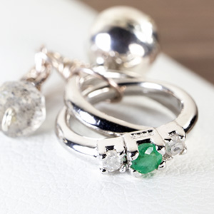 エメラルドはベリルという鉱物グループのひとつで、 クロムやバナジウムによる発色とされています。 同じベリルでも、グリーンアクアマリンやグリーンベリルと呼ばれるものは エメラルドと発色要因が異なるものです。 これらの石は、加熱することで緑色から青色へと変化します。 通常、エメラルドが生成される条件は非常に特殊であり、 大陸移動のような大規模な地殻変動により生まれてきたものと考えられています。 その為エメラルドの産地は限られており、希少性の高い宝石といえます。モース硬度は 7.5 - 8 と高めですが、 内傷や内包物のないものはほぼ存在しないため、衝撃に弱く加工の難しい石です。 加えて屈折率が低いこともあり、ブリリアントカットよりも加工しやすく 印象的な緑色を広く見せられるエメラルドカットが施されるようになりました。