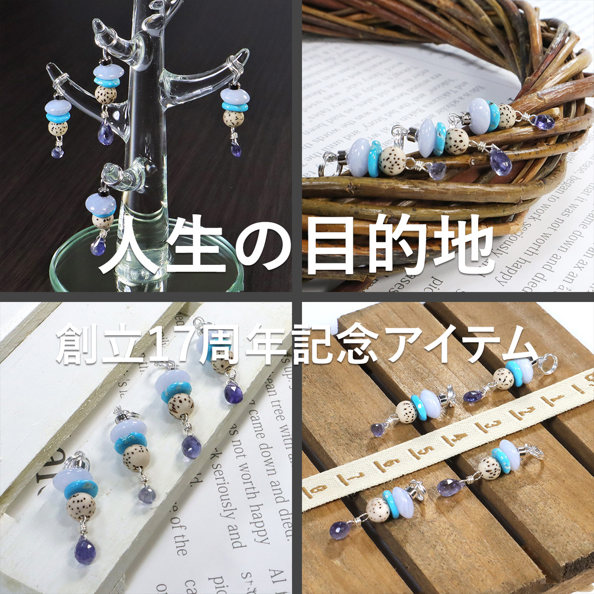 法人化17周年記念チャームです!! 三碧木星の年ということで青石がメインですが、 菩提樹のウッドビーズも使って、 仏教的な深みもテーマに加えてみました。 涅槃という安らぎの境地へと向かいましょう! 人生の目的地
