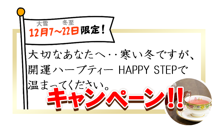 大切なあなたへ・・寒い冬ですが、開運ハーブティー HAPPY STEPで温まってください!キャンペーン!!