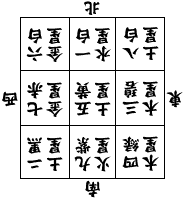 魔方陣とは縦横斜めどれを足しても同じ数になるもののこと。