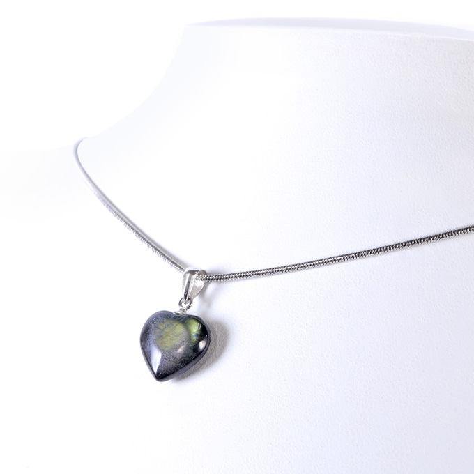 このラブラドライトは、 ラブラブライトの携帯版。 常に胸元につけて置く事によって、 愛情水の氣が循環される事になります。 更にシラーの魔法のハートバージョンでもあります。 美しいシラーの部分を切り取った、 高濃度シラーペンダントトップとも言えますね!