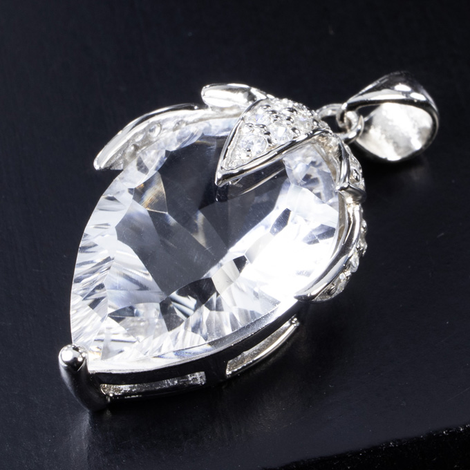 クリアで光りを倍増させるマーキスカットの水晶果実・・