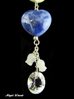 ソーダライトのチャームです。 ソーダライトは守り石で、交通安全などにも役立ちます。 今回のハートの形は心の護りにも役立ちます。 どうぞ大切な心を守ってください。