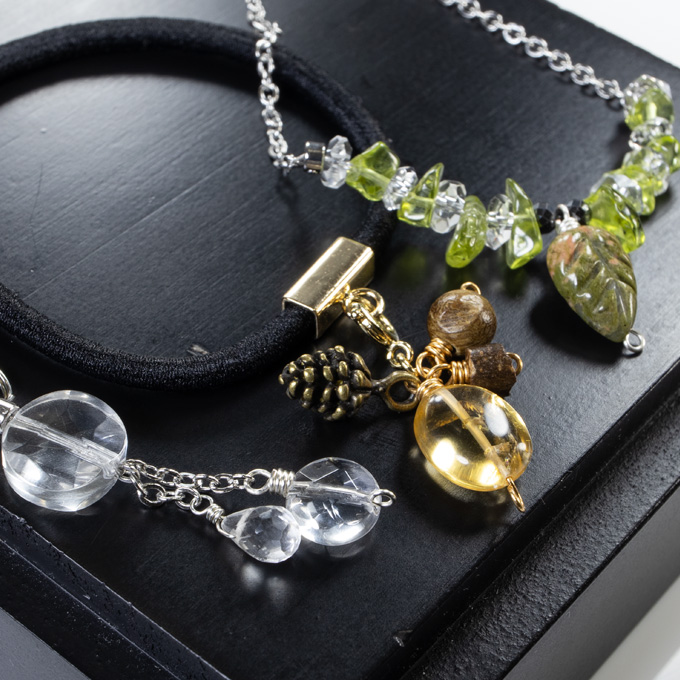 Green & Blackの開運色の組み合わせの石たちが、ダブルで活躍する仕様。