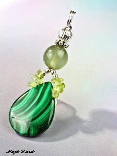 飛躍石ペリドットで大粒のマラカイトを繋いでいます。