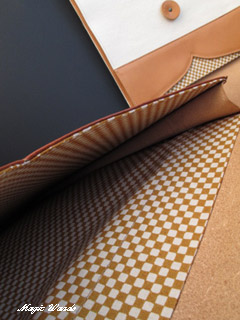 とは言え、クリアファイルだけで持ち歩くことを考えれば、 このケースに入っていた方がずっと良いですわ。 そもそも、クリアファイルってきっちり封されていません。 書類が囲われないので、広い面を覆われるものではありますが、 直接風水ファイルケースに書類が触れることも出来る構造ですからね。 それに、クリアファイルのマイナスの火の氣は、 内側の市松模様が抑えてくれるのです。