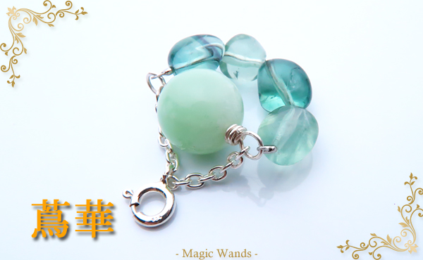 チャームは水晶の花とペリドットの組み合わせによる