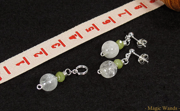 大粒の透明感ある薄グリーンの石はトリフェーン。誰かに想いを向けた時、いつの間にか自分の中に蓄積される ストレスやマイナス感情を昇華してくれるとされています。 輝きが独特な特別な美しさを持つ子ですわ。