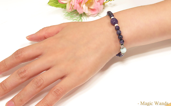 ベースに日本の氣を持つスギライトを使い、 東西の位置には海と空の氣を持つラリマーを配置。 天地の地、すなわち陰陽の陰にあたるポジションには チャロアイトをサイドに双獅子のように従えた 凶意ろ過のスーパーセブンを配しています。![]()