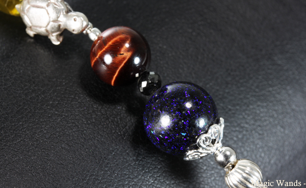 次にブラックダイヤと ブルーブラックマトリックスオパール。ブラックダイヤは周囲の氣を一度取り込んで、数倍から数十倍にして 持ち主に還元すると言われるパワーブースター石。 亀の歩みは着実な分、時間がかかってしまいがち。 僕は欲張りなので、亀の着実さに加えてスピードも欲しいのです。 そこで強力なパワーブースターを取り付けました。