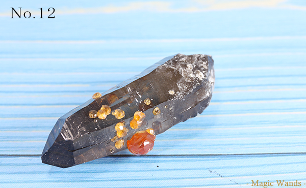メインになっている 灰色の半透明な石はスモーキークォーツで スモーキークォーツに 寄りそうようにマンダリンガーネットの結晶が くっついているという奇跡のような原石ポイントです!