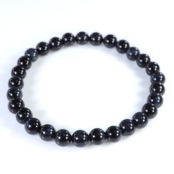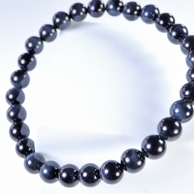ブルータイガーアイのバングル。 集中力の石と言われ、仕事や勉学や掃除などの向き合わないといけないシーンに力になってくれます。 集中力なんていつでも欲しいので割と万能です。 タイガーアイの仲間でホークスアイと呼んだりもします。 一見真っ黒ですが太陽光などの強い光にあてると 縞状の青い模様が姿を見せてくれます。