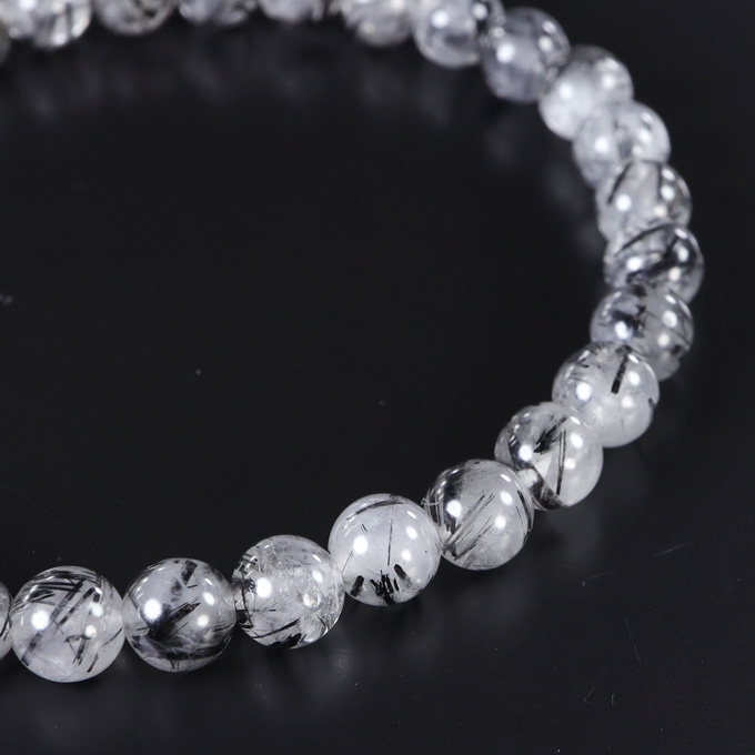 トルマリンインクォーツのバングル。 トルマリンが筆で描かれたように水晶に内包されている石です。 トルマリンは遠赤外線を発することから健康、美容運アップの石と言われています。 ブラックルチルクォーツと表記されている石も 大体このトルマリンインクォーツですね。 強弱ある線の個性をお楽しみください。