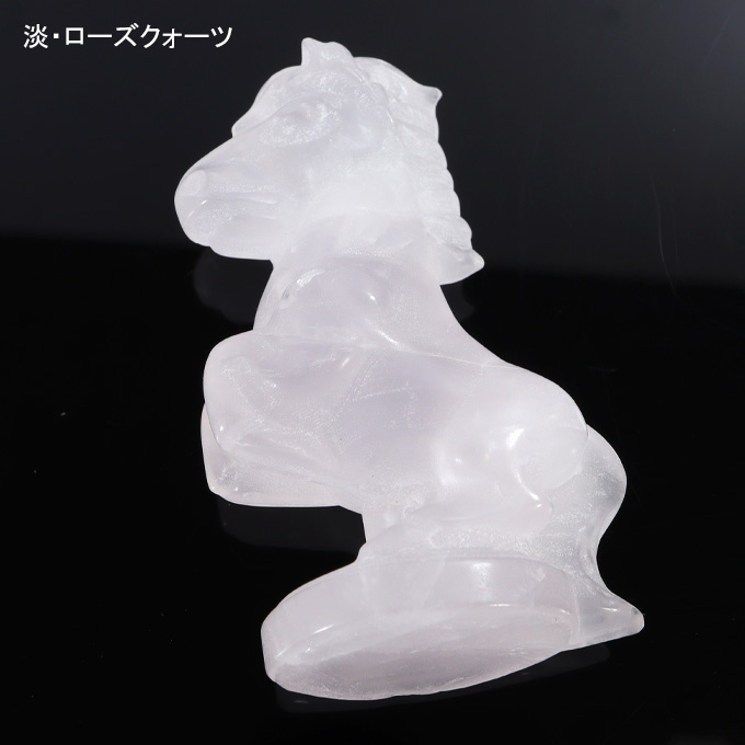 持ち主の愛情を引き出す水の氣石と言われるローズクォーツ。 自身の愛情を受ける与える機会を増やし 愛情に溢れた空間になる手助けをしてくれます。 ローズクォーツ自体はピンクであり、 普通は男性におすすめできない石でもあるのですが、 ウマという火の氣の生物が玄関を守るというコンセプトで使っていただけるなら 男性がご縁付けいただいても、問題有りません。 充分以上に活躍してくれるかと思います。
