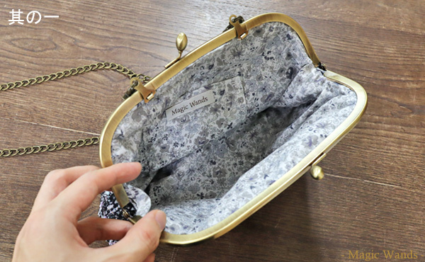 Magic Wandsではプラスアルファを意識したアイテムを デザインすることが多いのですが、スタッフさんの中には シンプルな作りの方が好みだという声もありました。 というわけで、何も考えずにモノを放り込める シンプルながま口バッグを作ってもらいました!