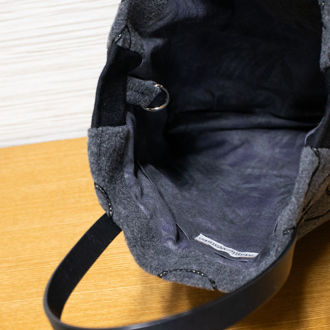 バッグには細やかな工夫がいくつか。 まず、表には見えませんが、口にマグネットボタンが仕込まれています。 ガチッとくっつかず当たりが柔らかいので、開閉による生地やボタンの傷みが氣になりません!