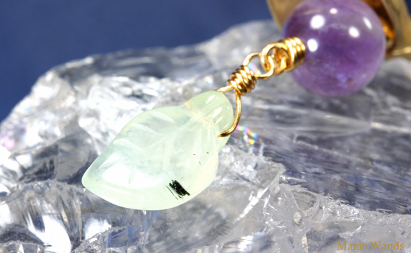 その下にはスコロライトの雫を。アメジストとは印象が違うふんわりした紫色ですが れっきとしたアメジストの仲間です。