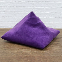 人間の座布団は一般的に平たいものですが、 水晶座布団はピラミッド型に仕上げています。 一見置きにくそうですが... ピラミッドの頭は簡単に凹ませられるのでご安心ください。