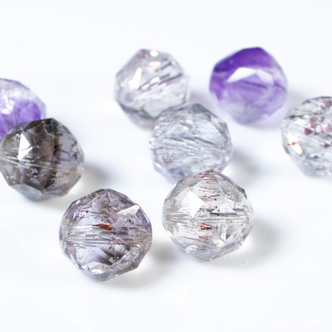 一番上にはスーパーセブンを。 スーパーセブンは7種の鉱物がひとつになっていることから 個性がくっきりしやすい石なのですが、 今回使用したスーパーセブンは とりわけ個性的です!どの子が届いても愛着が湧くこと間違いなし!