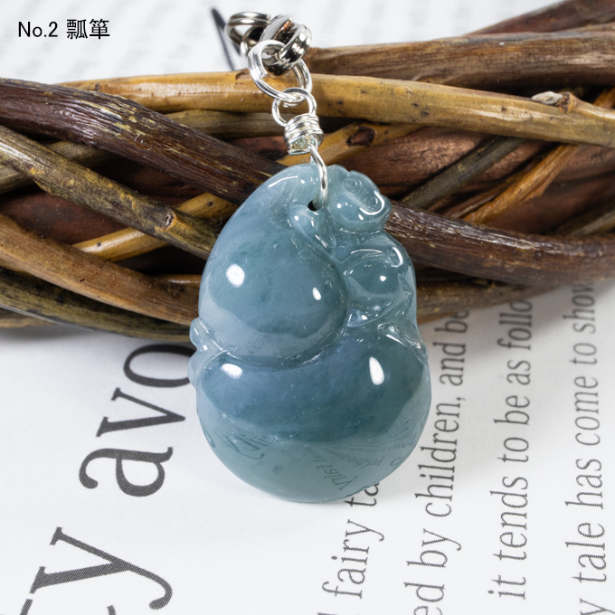 この青翡翠は中国風の彫刻が施されていますが、それぞれに意味があります。
