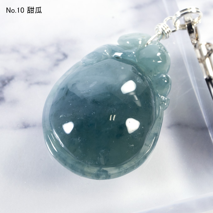 甜瓜(テンカ)はマクワウリやメロンなど、甘い瓜のこと。 瓜としては子孫が代々続くこと、家が繁栄することを象徴します。 しかもそれだけでなく、甘い!甘いものは風水的に金の氣・金運に繋がり、翡翠としてのパワーを後押ししてくれるモチーフでもあります!