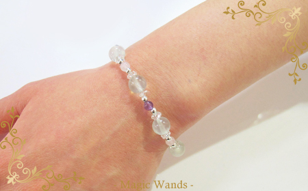 そのプレナイトをサポートする形で ローズクォーツとアメジストを配置しました。 ローズクォーツは、プレナイトの「理解力」を高める役割を持ち アメジストは、身を清めるという役割を持っています。 この2つの石を交互に組ませることにより より安定した「理解力」に変えていくパワーを 引き出していけるようになっています。