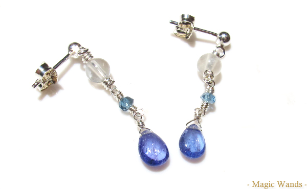 「蒼の流星」にピアス&イヤリングの登場です。 使っている石の種類は、ブレスレットver.と全く同じです。 爽やかな雰囲氣の中で揺れる極上のタンザナイトが本当に素敵です。