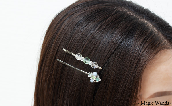 石や石を使ったモチーフが3つ連なることで、 石の持つパワーに成長力を持たせることができるということです。 今回はどちらのヘアピンにも、木の氣の要素を持つ 石を使用しているので、パワーは倍増ですね!