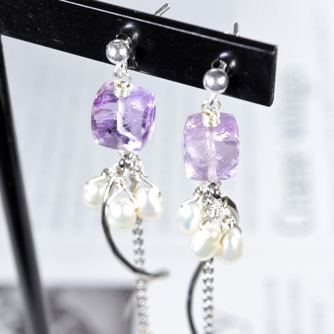 ピアスのいちばん上には、 ピンクアメジストを配置しました。 アメジストといえば浄化の名手です。 桜色の宝石のようなアメジストに 水の氣を清らかに保てるよう 守ってもらいましょう。