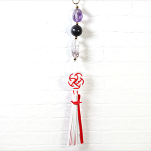 アメジストの上には、小粒のガーネットを付けました。 ガーネットは、運氣の種蒔きが得意な石です。 運氣の畑を耕す手を止めてしまうことなく、 ご縁やチャンス、行動力や新視点を追求する エンジンとなってくれるはずですよ。