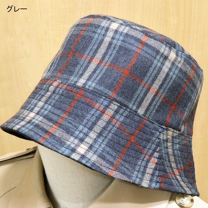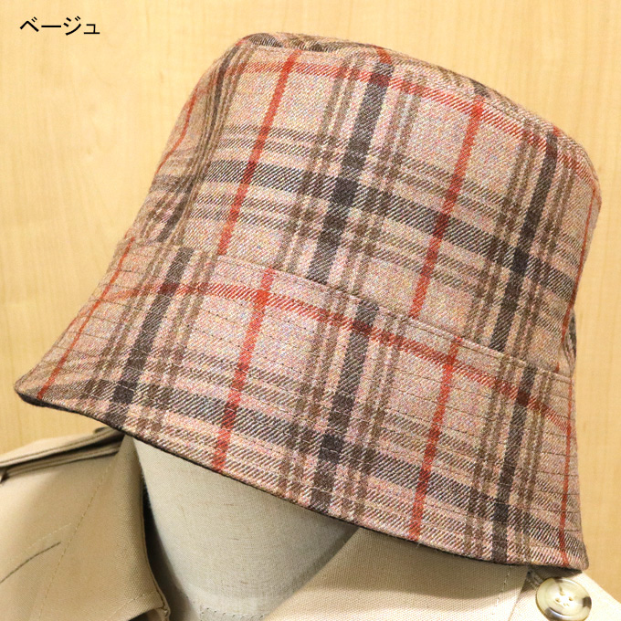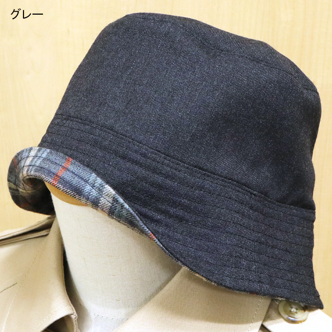 今回仲間入りしたのは、手で触れられる部分はすべてウール製のため 寒さから頭を守ってくれるバケットハットです! 製作の際には、つばの全体に渡るステッチをはじめ、 あちこちに難関があったそうで、 縫製スタッフさんの努力と技術の結晶となっています。