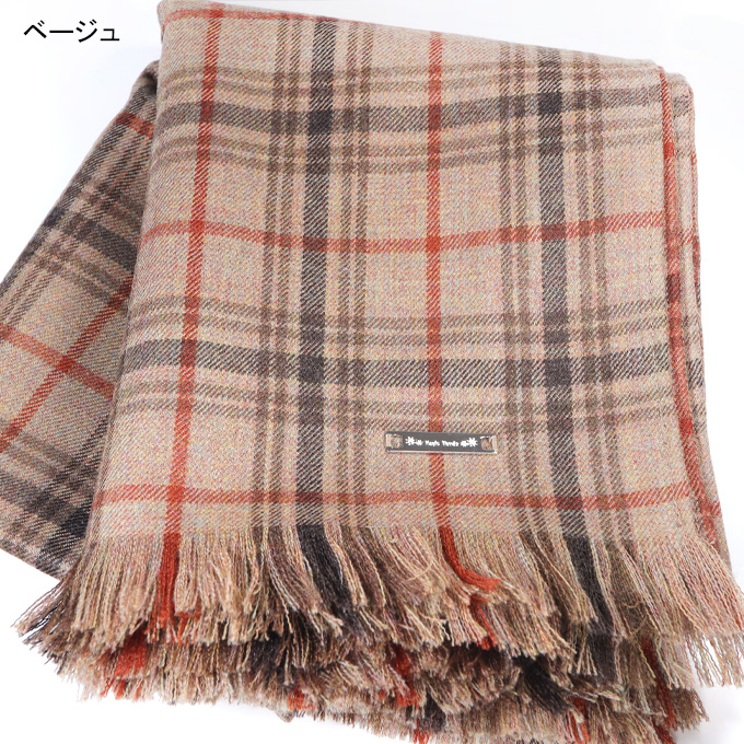 大判で、さっと羽織れるショールです。 シンプルな装いのときのワンポイントアイテムにも。 細く折ってマフラーのようにも。 羽織らないときにはひざ掛けにも。 なんなら、リビングの椅子に無造作にかかっているだけでも なんだか空間がおしゃれに見えそう…! チェックのお陰で、とても氣品ある仕上がりになっており わたしも氣に入っています!