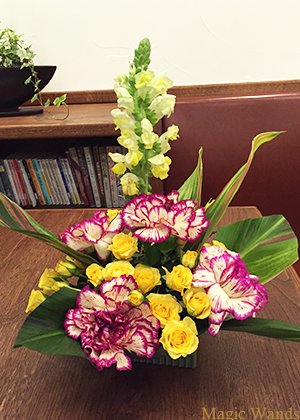 アレンジメントに4月の飛翔する辰の要素を持ち込み、