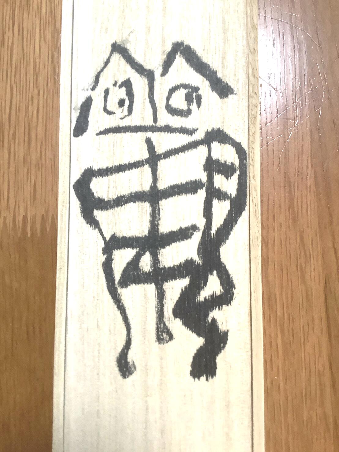 それもそうやなと思って、そこからもうとにかく左手で書く練習した。 クレヨンで来る日も来る日も文字を書いた。 文字が形になってきたなと思ってから筆に変えた。 そうやって書いたのが、この小さい文字の作品。